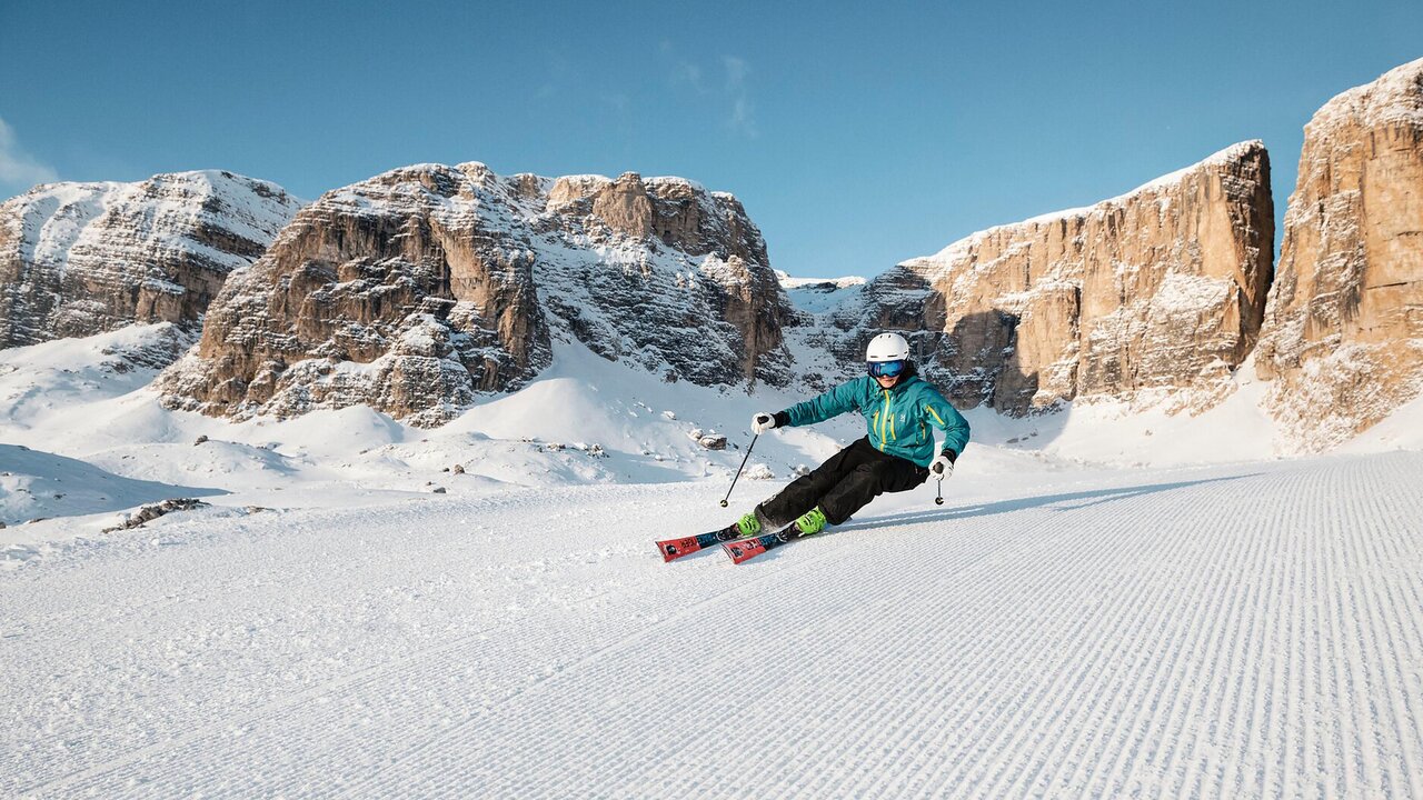 The Sellaronda is one of the most famous ski circuits in the Dolomites and runs all the way around the striking Sella massif. The ski tour can be completed clockwise or counterclockwise on perfectly groomed slopes and modern lift facilities, linking the ski areas of Alta Badia, Val Gardena, Canazei, and Arabba. Along the route, the four Dolomite passes of Gardena, Sella, Pordoi, and Campolongo are crossed. The circuit offers impressive panoramic views of the Dolomites throughout, as well as varied descents with different characteristics.