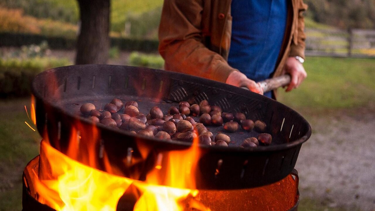 Autumn is upon us. Leaves in hues of gold and scarlet-red begin to dot the mountains, and the aroma of grapes, ripened by the summer sun, still wafts through the vineyards. This is the environment in which the Törggelen tradition was born: the farmers would invite friends and neighbours to their wine cellars and cozy Stuben parlours in order to celebrate the crushing of the grapes. Today, in keeping with authentic practice of the tradition, chestnuts from neighbouring groves are served together with homemade wine, and visitors can sample local specialties. As part of the Original Törggelen event, rural taverns known as Buschenschänke have been selected that meet the quality criteria of the Red Rooster brand. This year there are 18 taverns: located in the Isarco/Etschtal Valley, around Bozen and Meran, and along the Wine Route. The taverns in the Isarco/Etschtal Valley are connected to one another by the Eisacktal Chestnut Trail ("Keschtnweg").