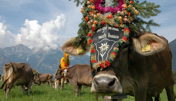 Traditional cattle drive at Fulpmes with farmer's market and Frühschoppen (morning pint).