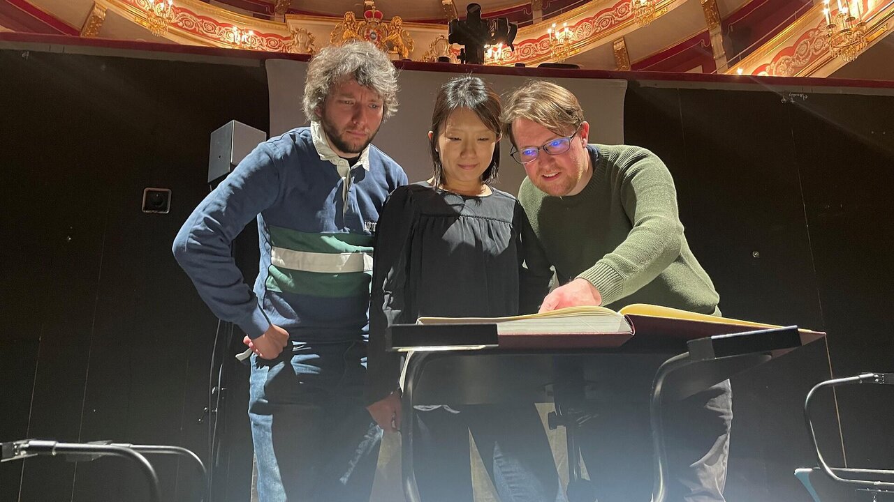 The concert by the Skweres Trio from Regensburg is part of an exchange project between the twin cities of Regensburg and Brixen, in which works by composers from Regensburg and Brixen are presented in both cities. Since the Middle Ages were a golden age for both Regensburg and Brixen – the architecture of the Middle Ages still characterises the appearance of both old towns today – medieval music serves as a connecting link in the concert. Short hoqueti from the 12th-century Bamberg Codex will be played between the contemporary works. The new compositions refer in a variety of creative ways to the music and art or the spirit of the Middle Ages.
