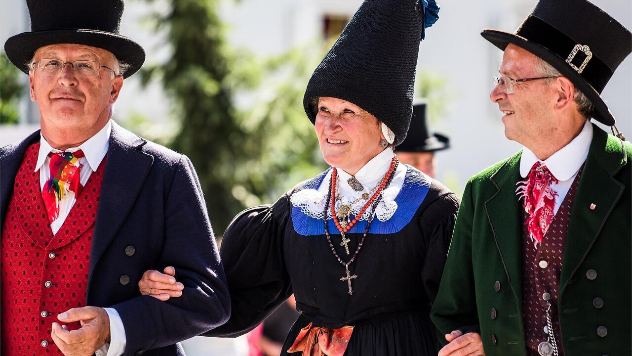 Following the folklore parade by Val Gardena costumes and music band S. Cristina, through the centre of S. Cristina to the Center Iman.