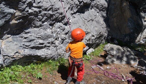 Adatto ai bambini a partire dai 6 anni. Se necessario, l'imbracatura e il casco vengono messi gratuitamente a disposizione della Scuola di Alpinismo.