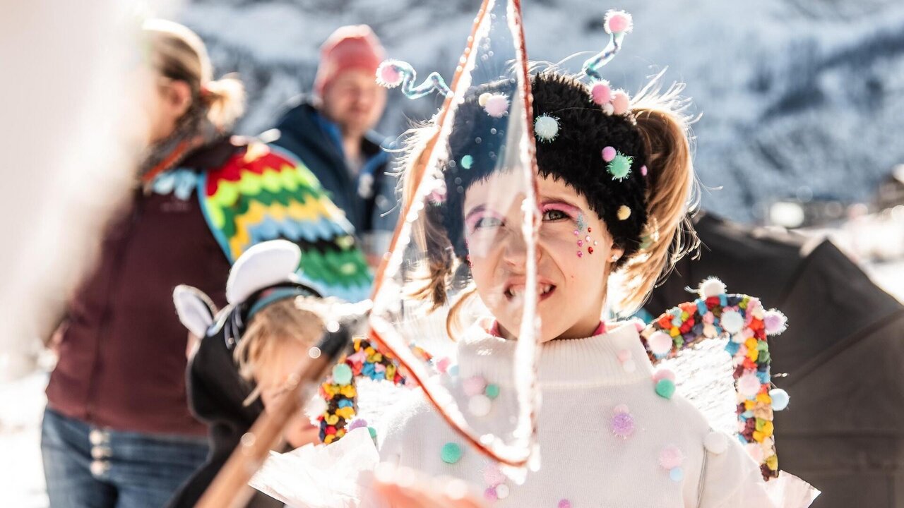 Il carnevale di Colfosco é un'esplosione di colori, musica e divertimento in pista.
