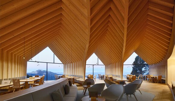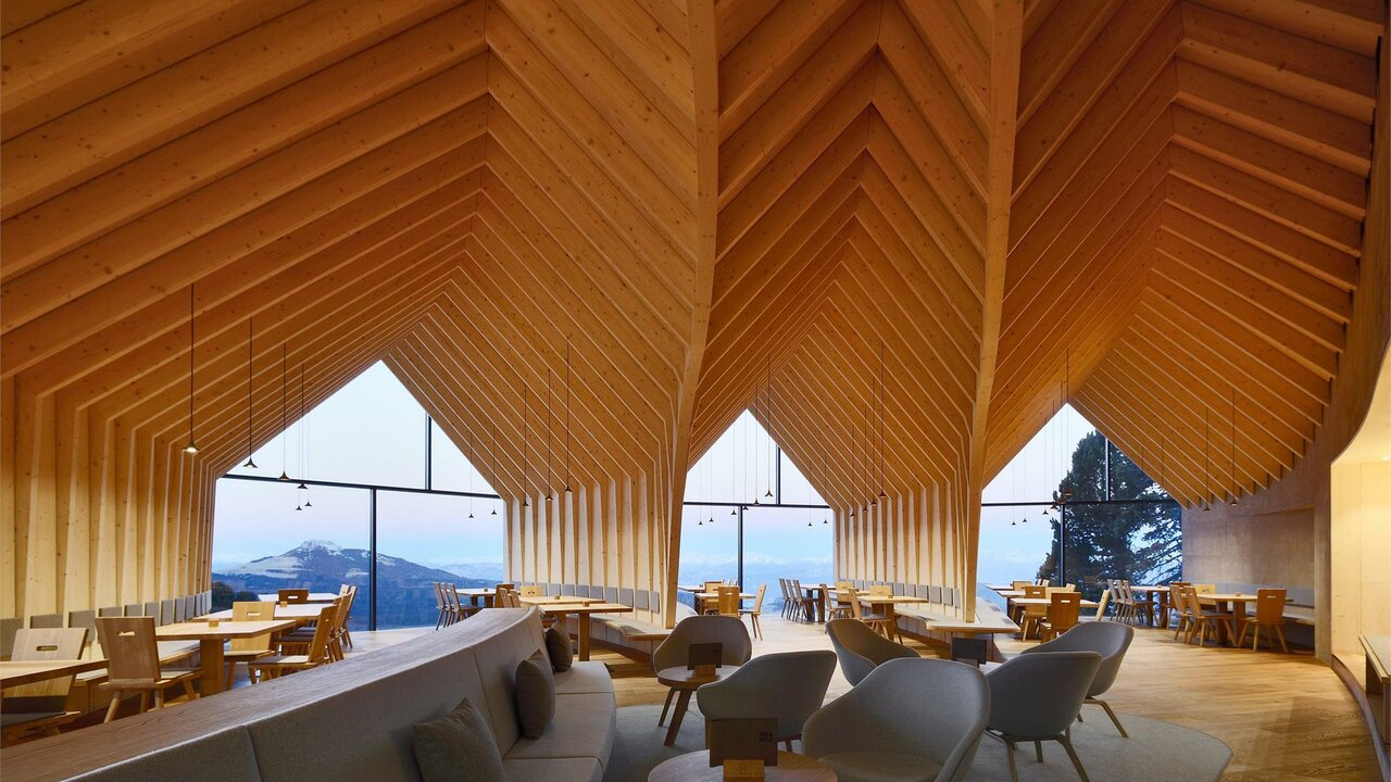 All’avanguardia, con zona lounge ed enormi facciate in vetro. Come nel resto dell’area escursionistica e sciistica di Obereggen, anche al Rifugio Oberholz l’efficienza energetica è oggi una priorità. Il complesso è riscaldato con energia geotermica. L’intera facciata esterna è realizzata in tavole di larice mentre il rivestimento interno è in legno di abete. Un esperto illustrerà in dettaglio il progetto e funzionamento dell‘impianto. Nelle tre salette, affacciate sulla leggendaria pista Oberholz, sarà inoltre possibile gustare la tipica merenda altoatesina servita sul tagliere, assaporando il tepore di un’atmosfera unica.