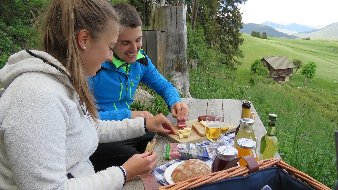Godetevi un picnic idilliaco in mezzo alle Dolomiti. Il cestino da picnic pieno può essere prenotato tramite il Tourist Info. Può essere ritirato a partire dalle 9.00 e restituito entro le 18.00 dello stesso giorno o alle 9.00 del mattino successivo.