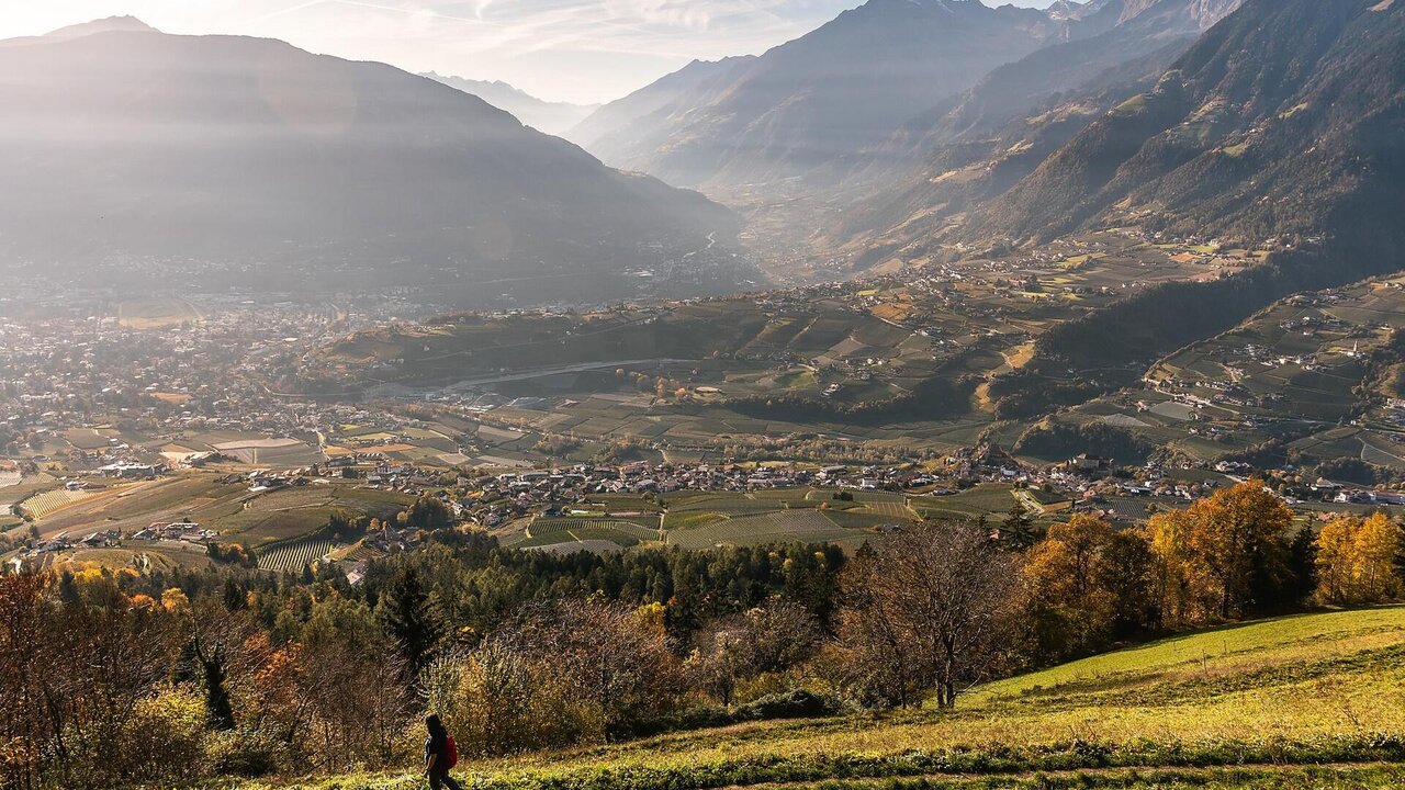 L'autobus vi porta a Verdins e, dopo la chiesa, l'escursione conduce attraverso il Wiesersteig e lungo il sentiero escursionistico che corre parallelo all'Hofweg fino a Pichler e poi a San Giorgio e Scena.