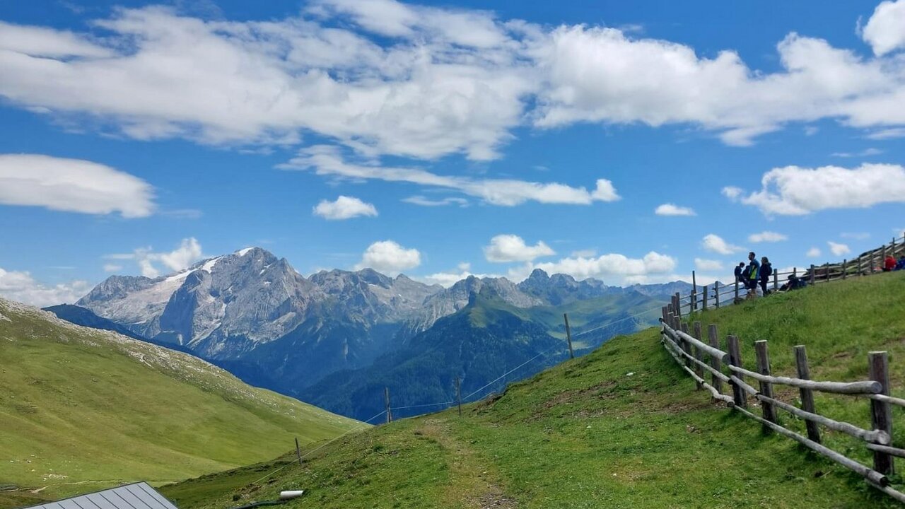 Arrivati, iniziamo l’escursione in direzione del rifugio Sasso Piatto. Il sentiero, leggermente in salita, offre viste mozzafiato sulle Dolomiti circostanti. Successivamente, camminiamo attraverso prati verdi fino a raggiungere il rifugio Friedrich August, dove facciamo una pausa. Da lì, il percorso continua pianeggiante fino al rifugio Sasso Piatto, da dove inizia la discesa verso Monte Pana.