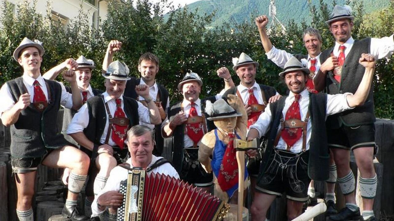 Oggi godiamo di danze del gruppo "Schuhplattler Prad", con vista per il campanile della chiesa parrocchiale, il municipio storico e il castello Schlandersberg/Monte Silandro, arroccato sugli scogli.