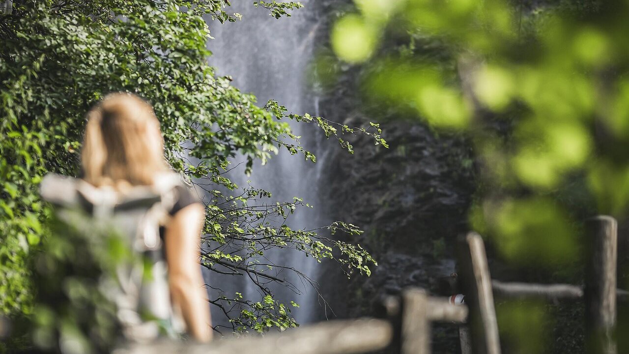 Escursione guidata alle cascate di Barbiano con esercizi di respirazione, Tre Chiese con degustazione di acqua curativa e guida presso il maso "Kräuterhof" Kreitla.