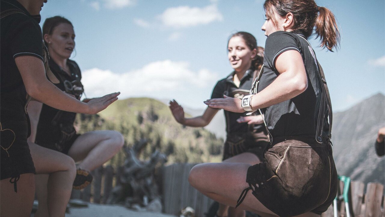 I tradizionali "Schuhplattler" provenienti da tutto l'Alto Adige creano una grande atmosfera sulle varie malghe. Il divertimento, l'intrattenimento e l'amore per la tradizione sono al centro dell'attenzione. Battimani, salti e il grido di gioia tradizionale fanno parte di ogni tipica danza degli "Schuhplattler" e invogliano molti a partecipare.