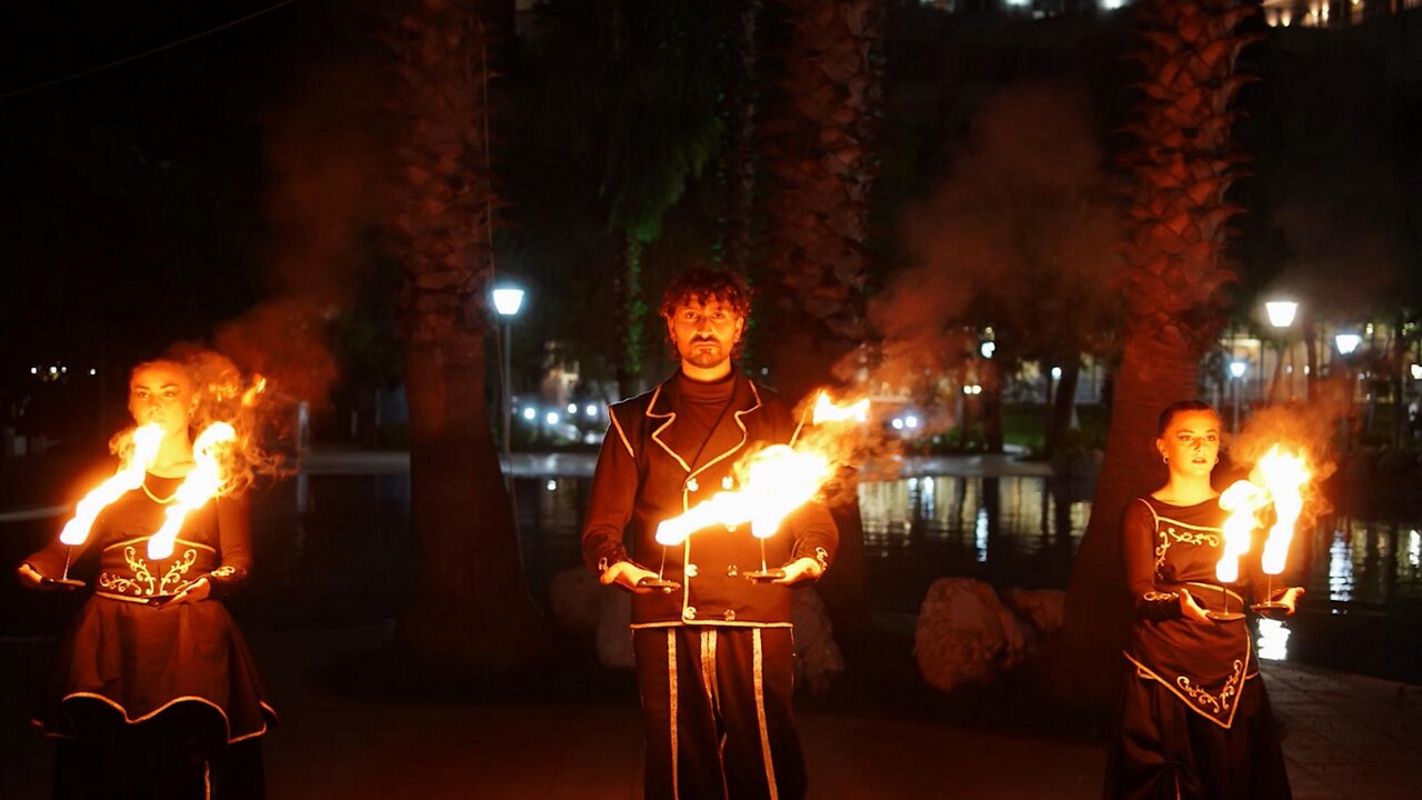 Con ELEMENTRIS l’oscurità diventa palcoscenico: tre artisti del fuoco portano luce, calore ed energia nella stagione più buia. Accompagnati da musica intensa, danno vita a uno spettacolo di fuoco della durata di 20 - 25 minuti con ventagli infuocati, hula hoop in fiamme e molti altri elementi suggestivi. Una poesia visiva fatta di fiamme, movimento e atmosfera che incanta il pubblico.