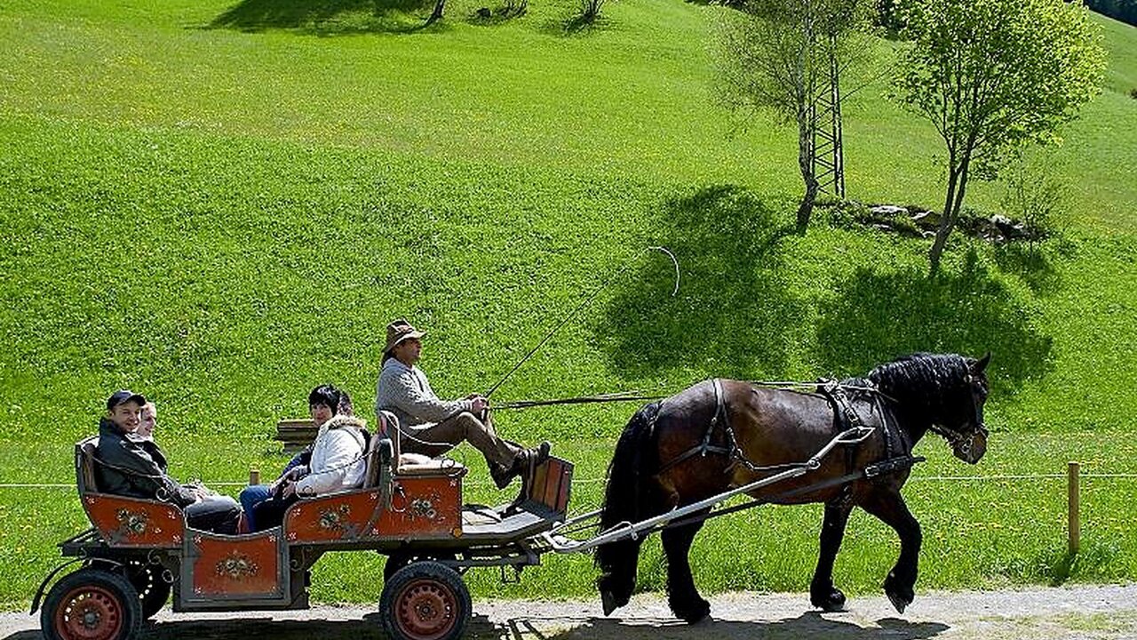 Gita in carrozza attraverso il paesaggio autunnale della Valle Aurina con visita degli animali al maso Obergruberhof