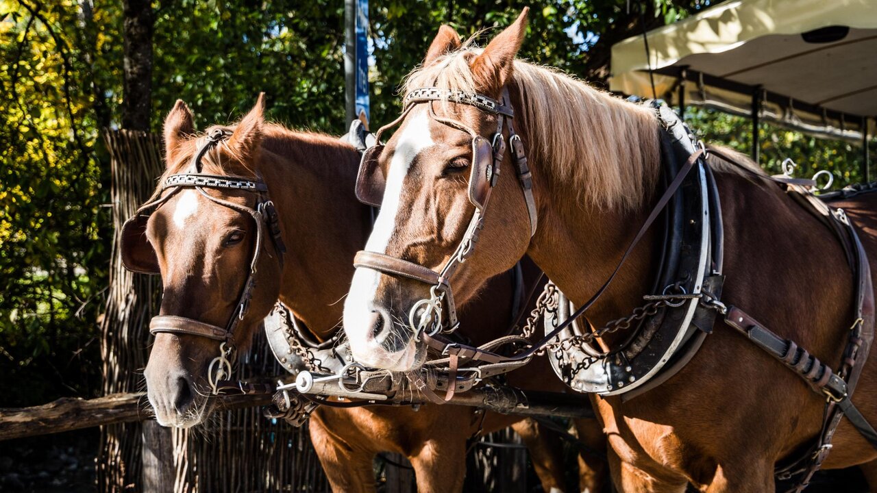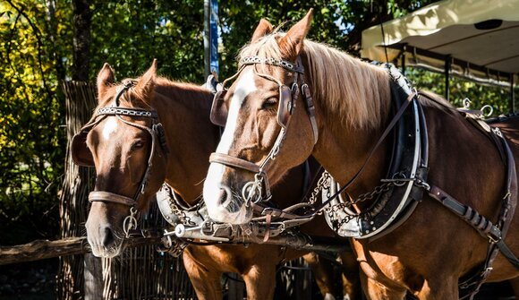 Gita in carrozza attraverso il paesaggio di S. Pietro e in seguito visita degli animali al maso Obergruberhof. Prezzo adulti 10 €, bambini 7 €