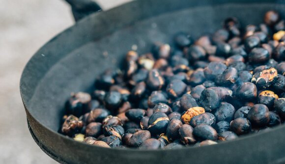 Il contadino Christoph Ladurner cuoce le castagne sul fuoco vivo nel giardino dei Cappuccini di Lana: ancora fumanti nei loro cartocci, le caldarroste altoatesine vi scalderanno le mani.