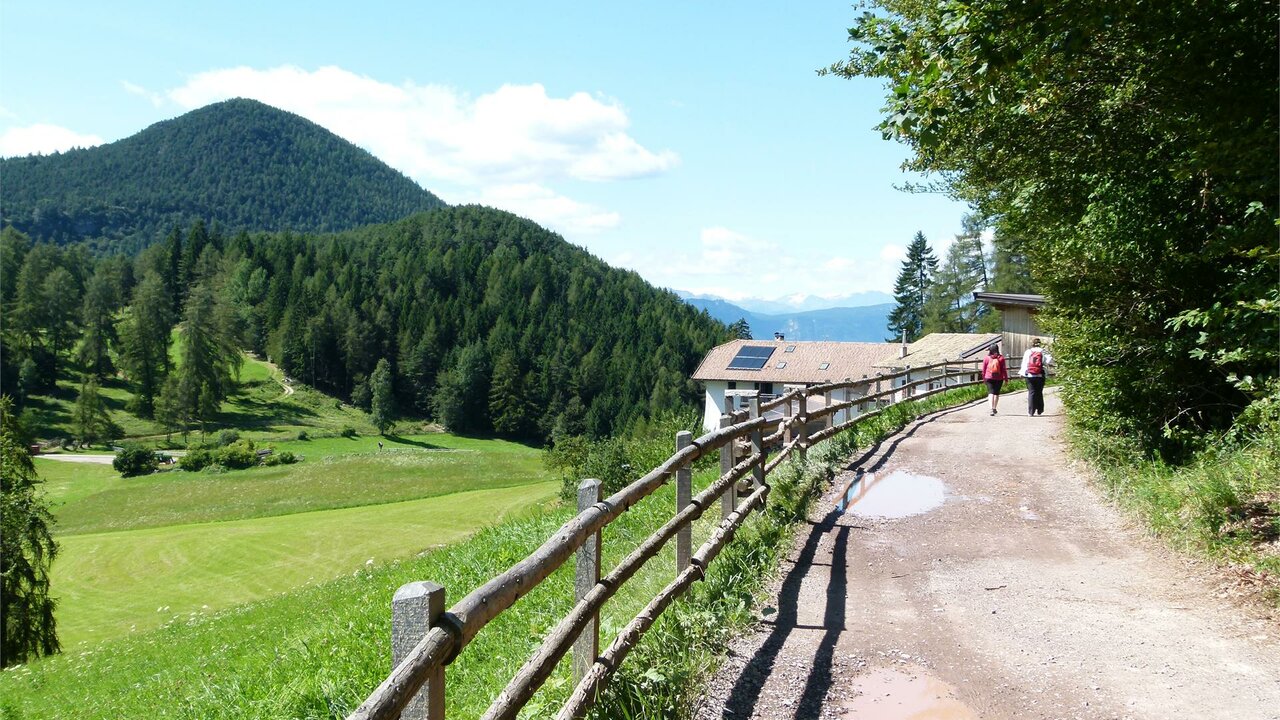 Dalla sella all’estremità settentrionale di Trodena seguiamo il sentiero delle leggende intorno al „Forchwaldegg". Passiamo il maso Rungganö e seguiamo il segnavia n. 5 lungo una strada forestale e poi per un sentiero fino alla Baita Pera. Da qui la vista spazia verso Nord fino al Gruppo di Tessa e le Alpi dello Zillertal. Proseguiamo per bosco giovane e zone umide passando al biotopo Palude Longa per arrivare alle Malghette (aperto d’estate, 1.540 m). Dopo la sosta scendiamo per il sentiero n. 6 e poi n. 5 fino al centro paese di Anterivo. Da qui c'é la possibilità di tornare al punto di partenza con il servizio pubblico.