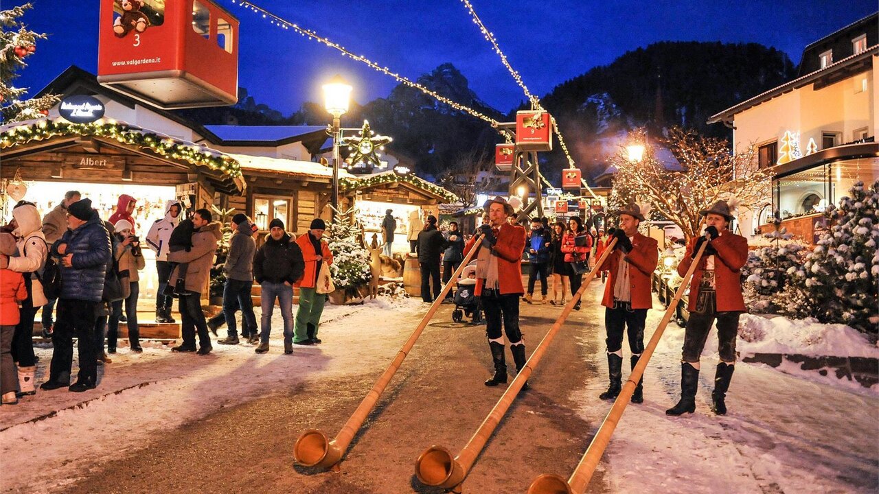 Godetevi i suoni unici dei suonatori di corno alpino di Selva Val Gardena, che vengono presentati al mercatino di Natale "Mountain Christmas". Con melodie tradizionali delle Alpi, i musicisti creano un'atmosfera festiva e trasportano i visitatori nel paesaggio innevato delle montagne. I toni potenti del corno alpino regalano un'esperienza indimenticabile, perfetta per il periodo natalizio.
