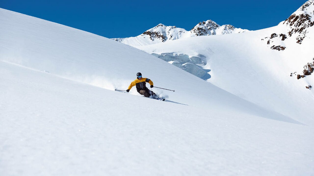 La spettacolare gara Pitztal Wild Face Extreme Freeride non è proprio pensata per i deboli di nervi. Si scia per 1.500 metri di dislivello attraverso terreno non preparato. Vince il più veloce.