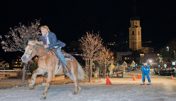 Durante questa manifestazione, un maestro di sci scende lungo la pista e poi viene trainato da un cavallo fino alla partenza – e tutto questo a tempo. Chi farà il miglior tempo e commetterà meno errori vincerà.