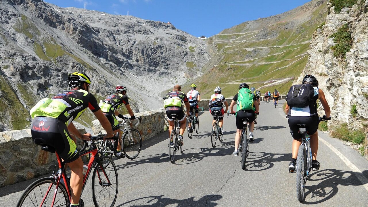 In questa meravigliosa giornata ciclistica si tratta di conquistare i 2.760 metri di Passo Stelvio, uno dei passi più alti di tutte le Alpi. Non è una gara ciclistica: l'importante è partecipare!