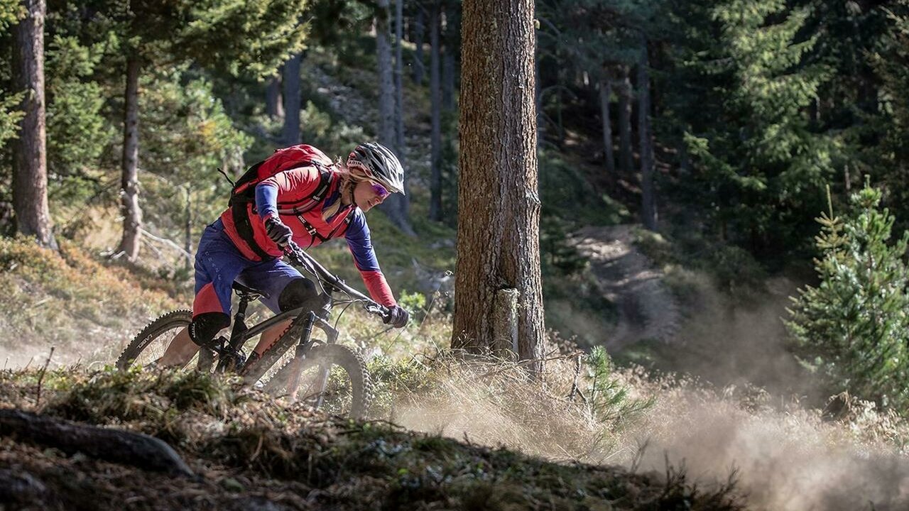 Una salita breve ma sempre rilassata ci porta all'inizio del sentiero. La discesa è scorrevole e divertente all'inizio, per poi passare a un tratto più ripido, dove è richiesta sensibilità sui freni.