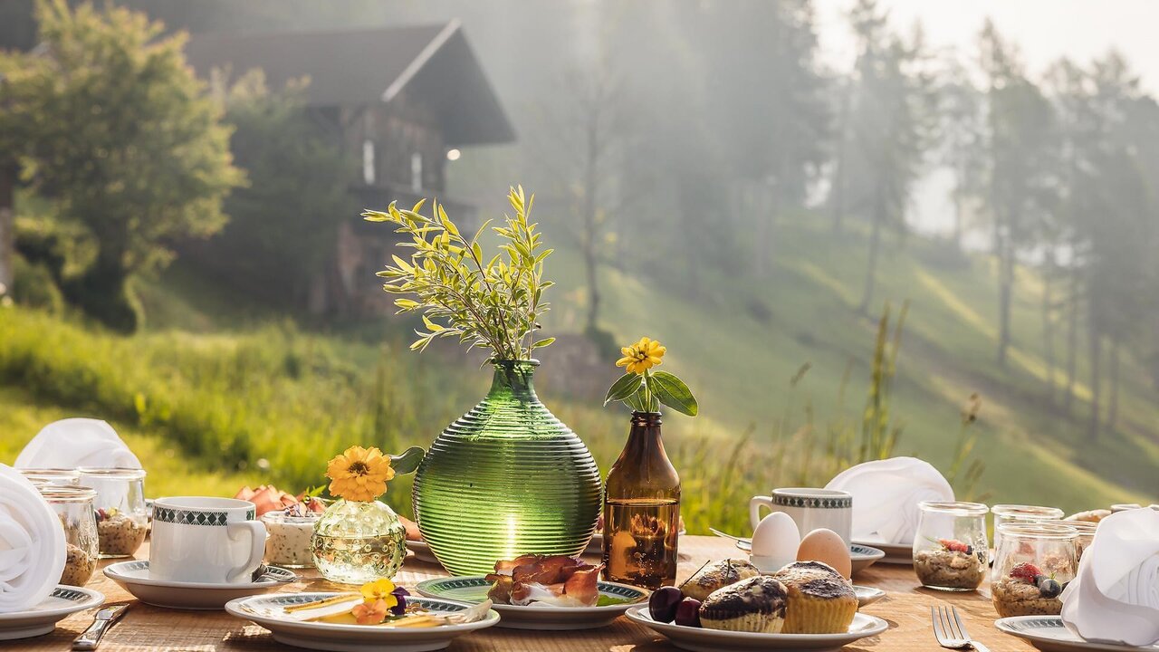 Al tavolo della colazione nei prati del Mandlerhof, potrete gustare una colazione regionale in un luogo unico. Sempre il martedì a partire da 4 persone e tempo permettendo.