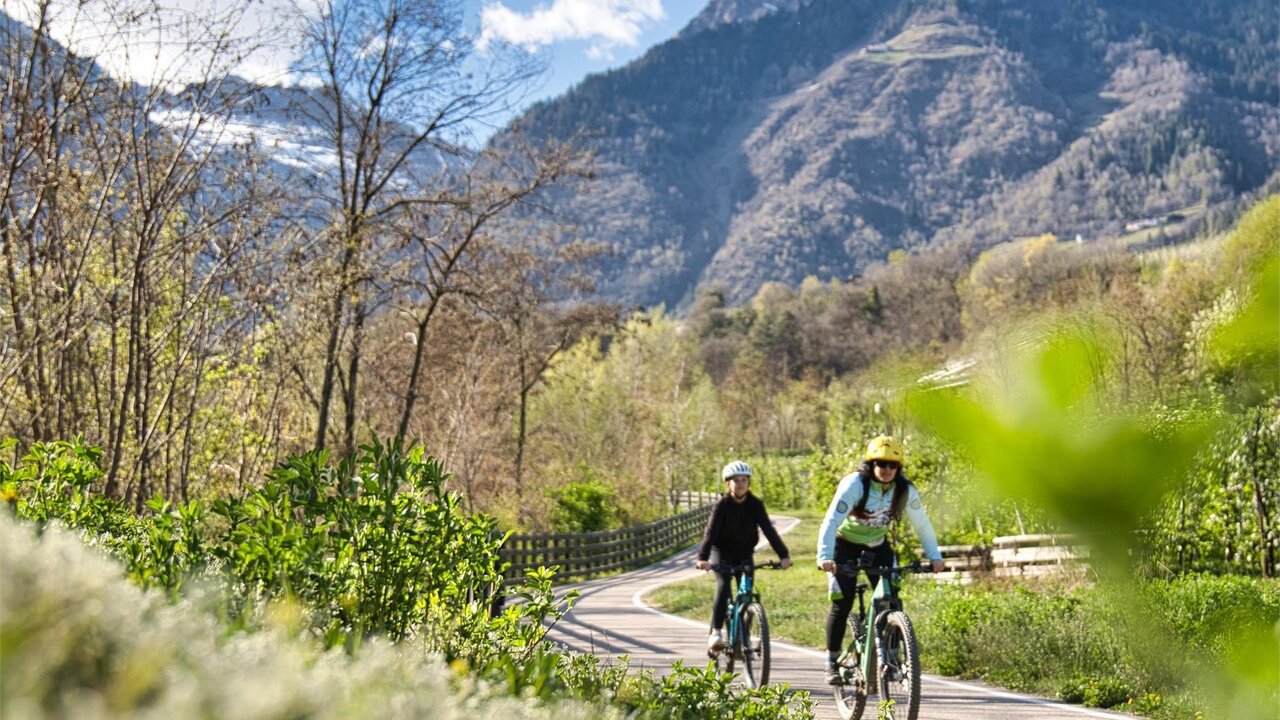 Partiamo dal noleggio bici S.S. 38 Bike a Lana (parcheggio disponibile) e lungo la pista ciclabile arriviamo alla frazione meranese di Sinigo e passiamo davanti alla latteria sociale di Merano in direzione di Castel Trauttmansdorff; lungo la via di Sissi raggiungiamo Merano dove impariamo alcune cose sulla città termale. Attraversiamo la città sul Passirio fino a Lagundo per giungere ad un bellissimo punto panoramico a Tel.