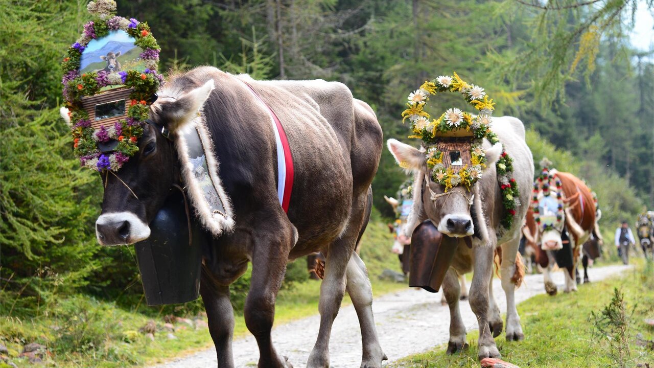 Il 31 agosto i contadini conducono il loro bestiame a valle dopo un'estate trascorsa sulla malga Ausser Schwemmalm. Rientro del bestiame presso l'alloggio Moritzhöhe: dalle ore 13.00 ca.