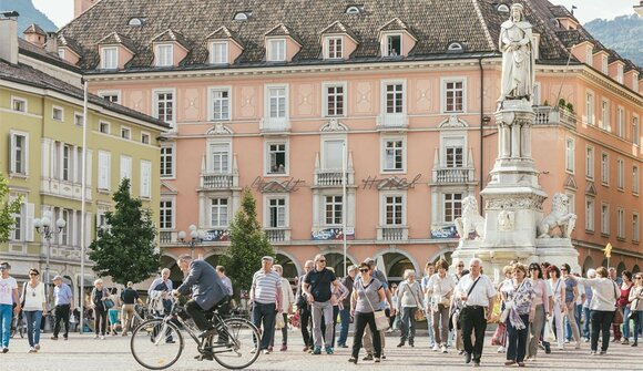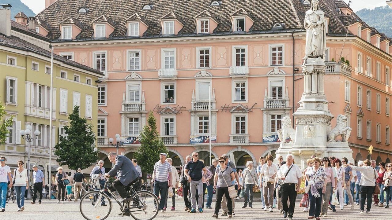 Itinerario alla scoperta degli angoli più suggestivi del centro storico quali piazza Walther, piazza delle Erbe, i Portici e piazza del Grano.
